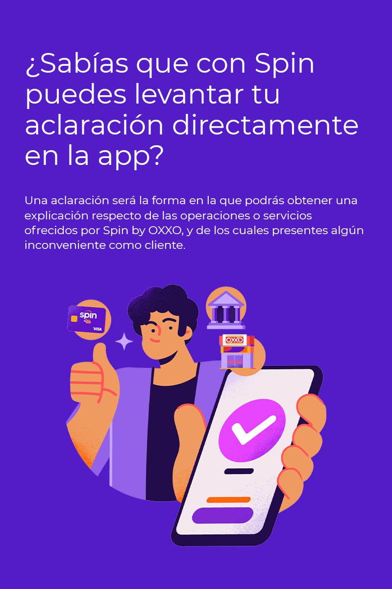 Realiza el levantamiento de tu aclaración desde tu aplicación Móvil de Spin o Comunícate al Centro de ayuda