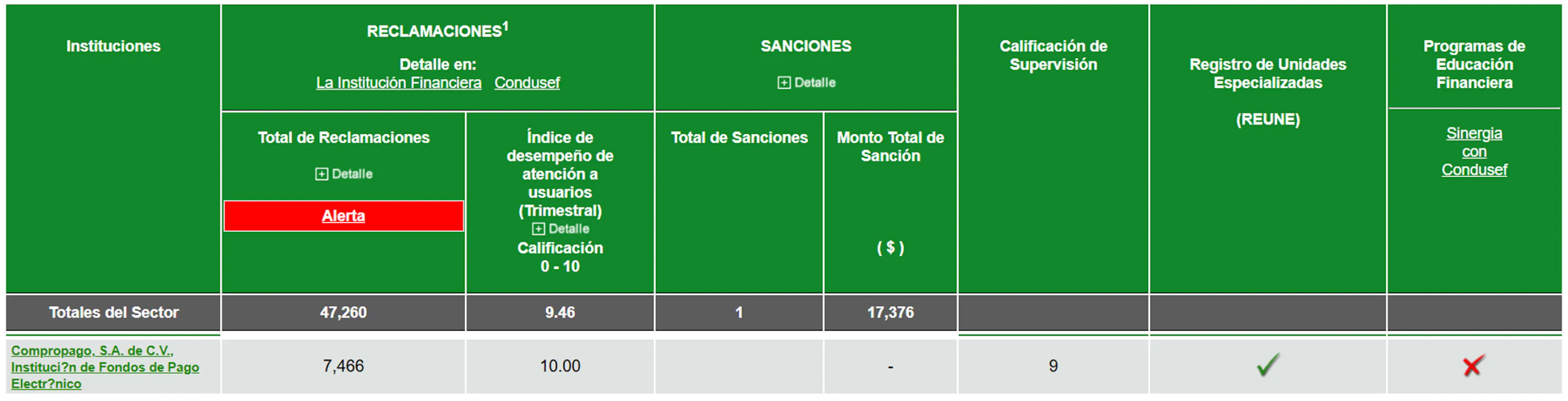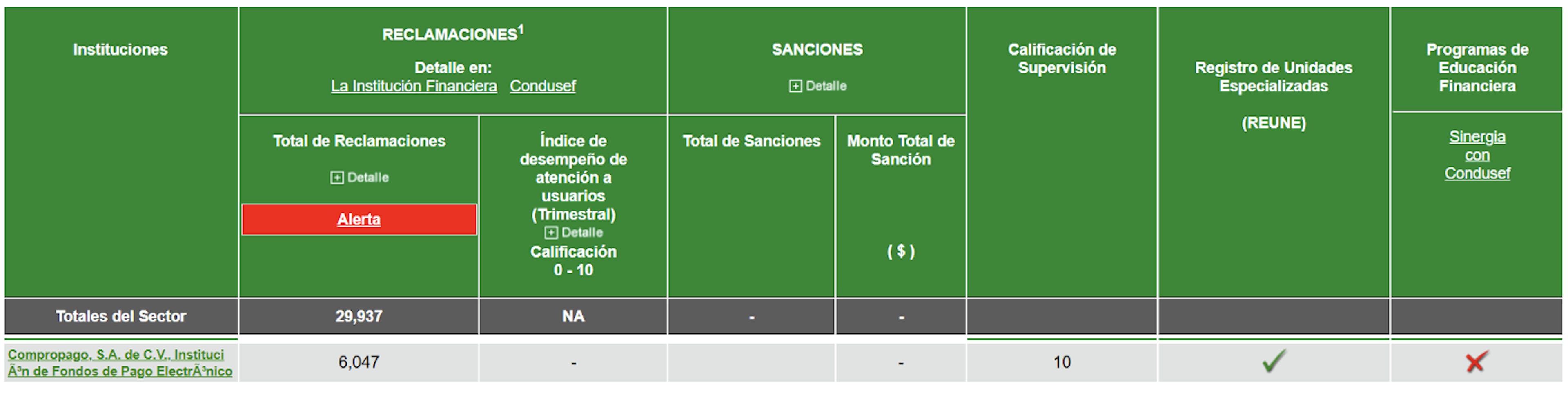 - La siguiente información corresponde únicamente a Compropago, S.A. de C.V., Institución de Fondos de Pago Electrónico; para conocer la información de todo el sector de Instituciones de Fondos de Pago Electrónico deberá acceder al sitio de internet https://www.buro.gob.mx/